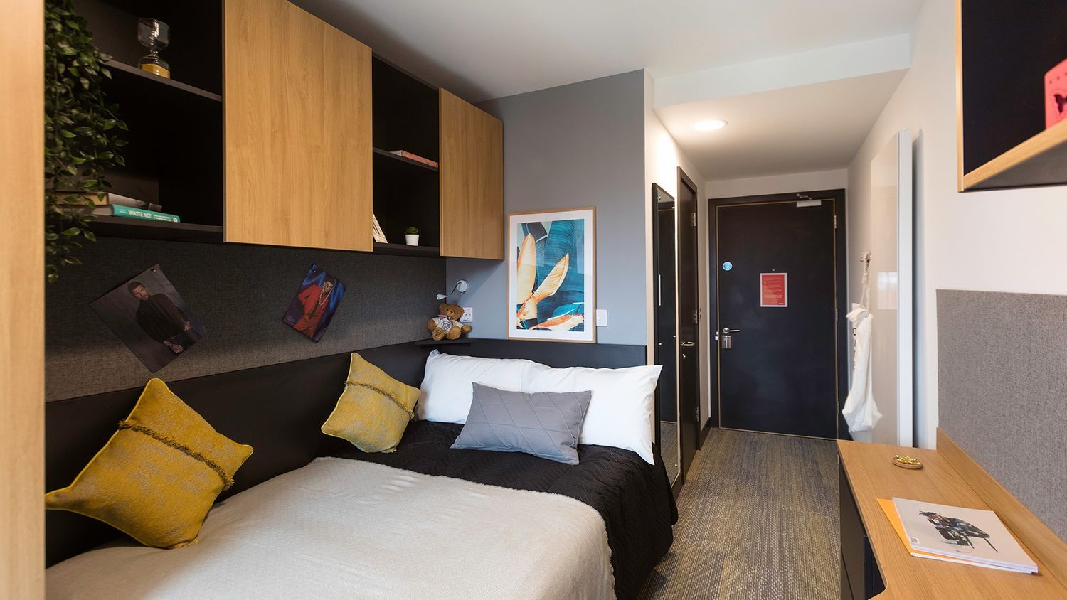 Our 12m2 cosy silver en suite upper floor room has some amazing views of Dublin with a nice private feel!Relax in your comfy bed and enjoy plenty of space with comfy mattresses, a wardrobe, bookcases, cupboards and your very own study desk and chair. Enjoy a modern en suite with a power shower, perfect for a refreshing start to the day!Cook a delicious meal in the shared kitchen with an oven, hobs, a fridge freezer, a dining table, and chill out in the communal space afterwards with your mates and watch some TV.The accommodation is inclusive of all bills with fast WiFi, perfect for streaming and doing some studying.You’ll also have secure door entry and access to all Aspens fabulous communal spaces.Each bedroom in this apartment access to a shared Kitchen and Living room shared with 5 other people.