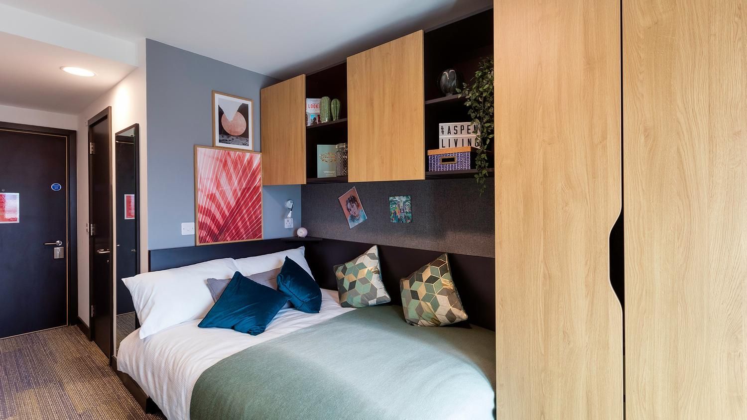 The accommodation is inclusive of all bills with fast Wi-Fi, perfect for streaming and studying.Your fabulous room will have a comfy mattress, wardrobe, bookcases, cupboards, and your own study desk with a chair. A quality en suite with a power shower will also be included.The open plan shared apartment living space has a kitchen with integrated appliances including an oven, hobs, a fridge freezer and a dining table, so get ready to rustle up a scrumptious meal!Soft seating and a TV are also in your living space, great for socialising and winding down.You’ll also have secure door entry and access to all Aspens communal space.Each bedroom in this apartment access to a shared Kitchen and Living room shared with 5 other people.